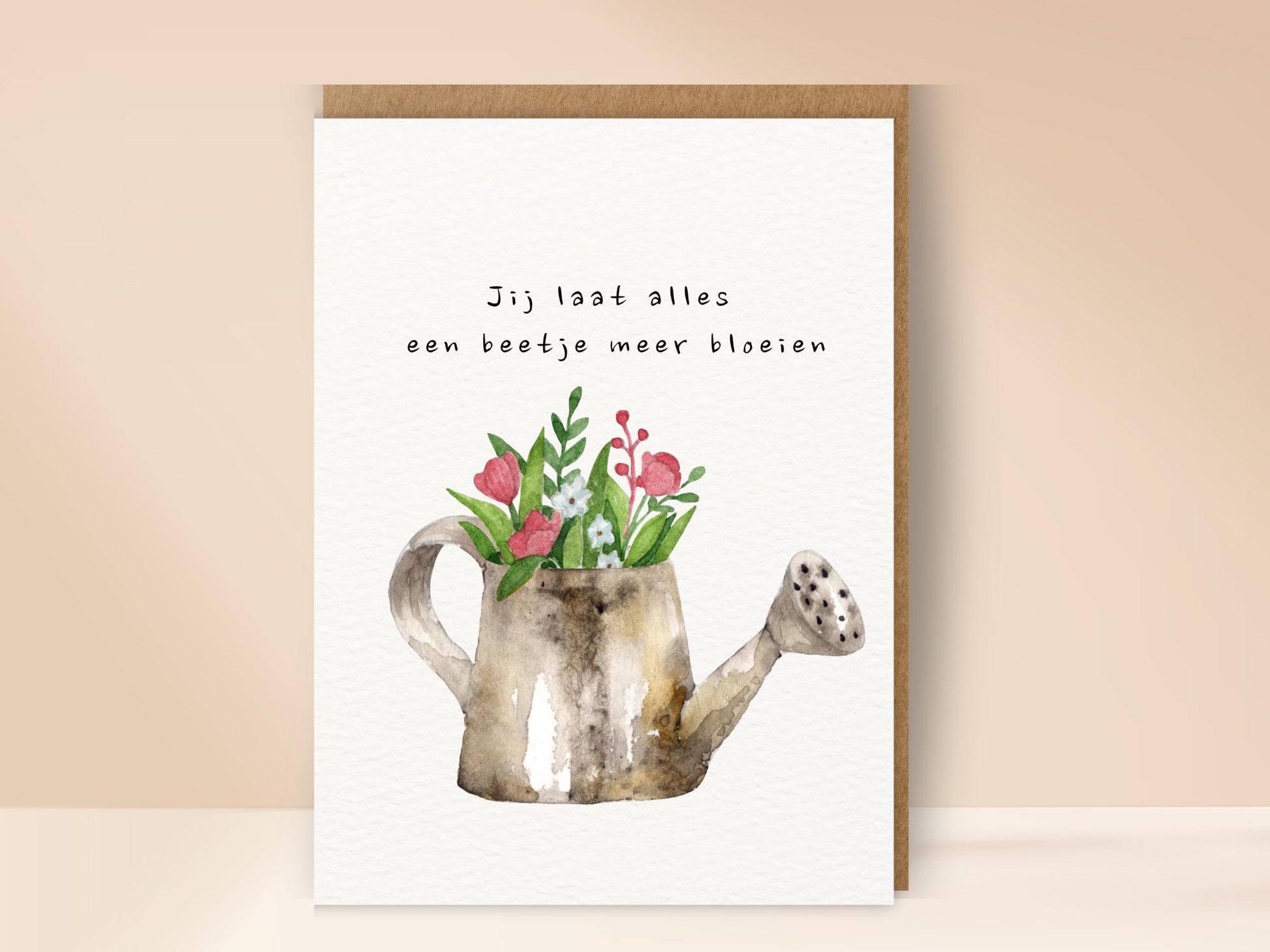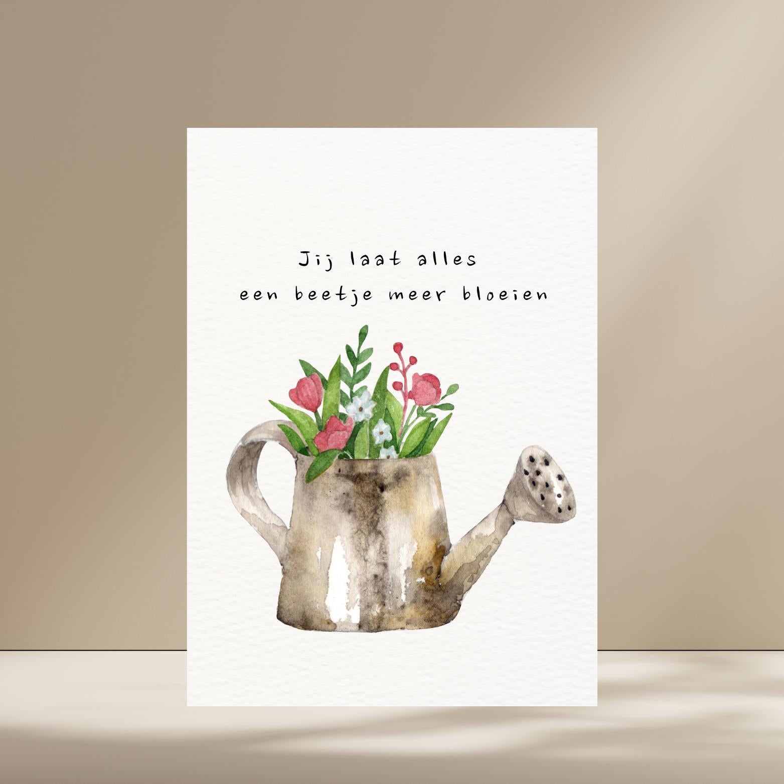 Een originele en creatieve kaart met een gieter vol bloemen. Ideaal om iemand te bedanken of waardering te tonen. Het speelse en warme ontwerp maakt dit kaartje geschikt voor vriendschap, liefde of gewoon zomaar.