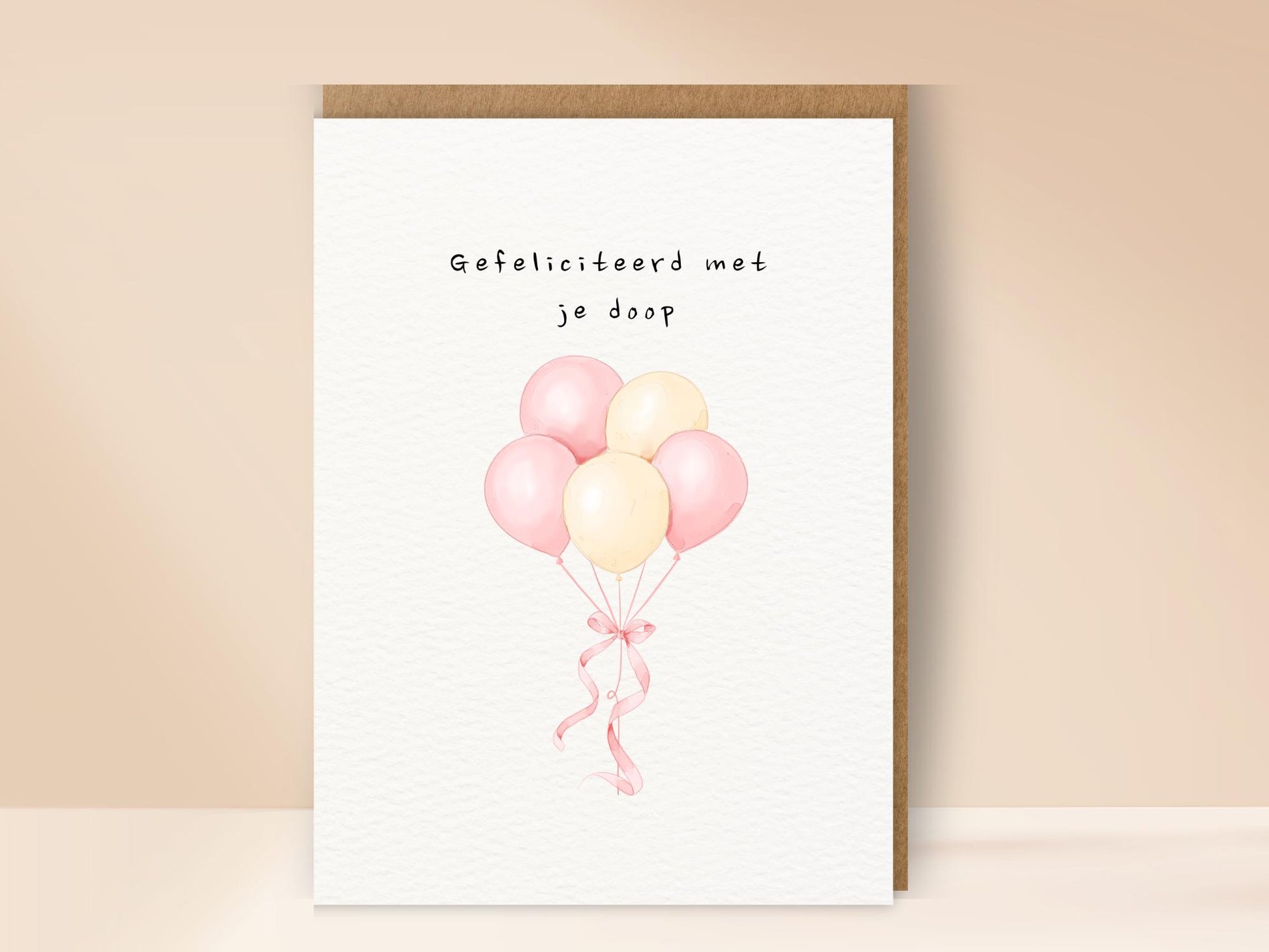 Een stijlvolle en liefdevolle kaart om een doop te vieren. Met zachte pastelkleuren en ballonnen is dit ontwerp geschikt voor zowel jongens als meisjes. Een blijvende herinnering voor een bijzondere dag.