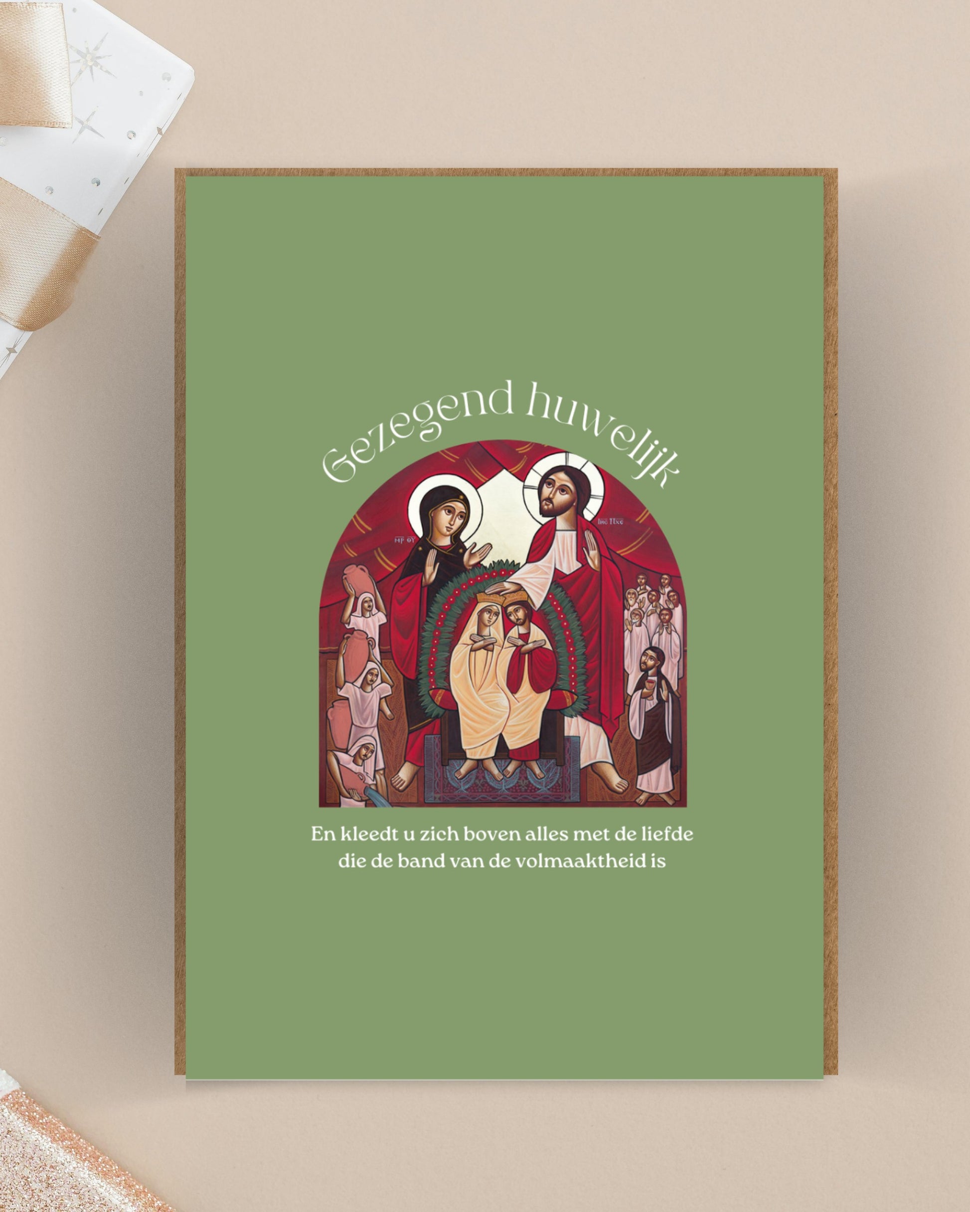 Christelijke trouwkaart met Koptisch icoon. Een feestelijke manier om Gods zegen toe te wensen bij een huwelijk.