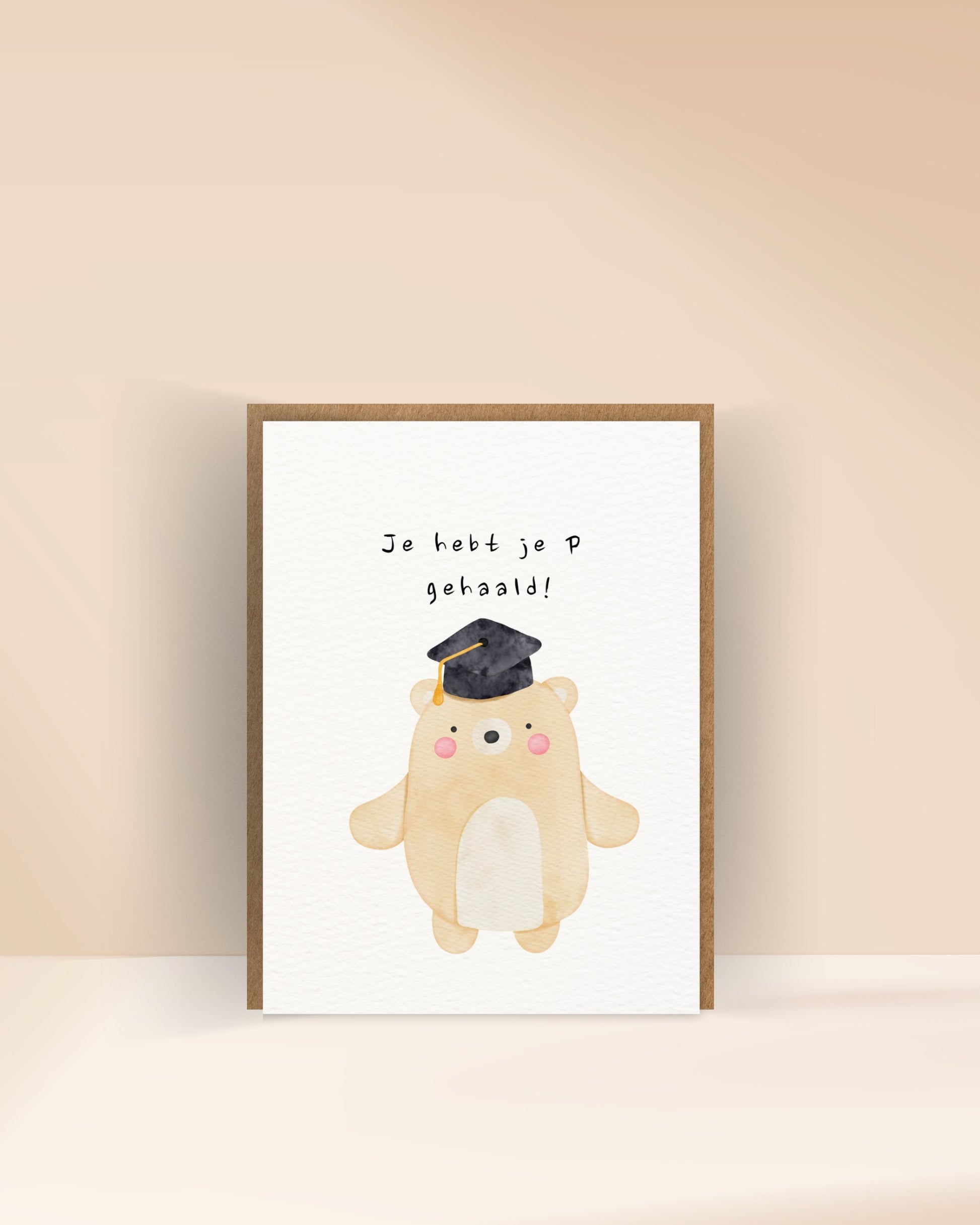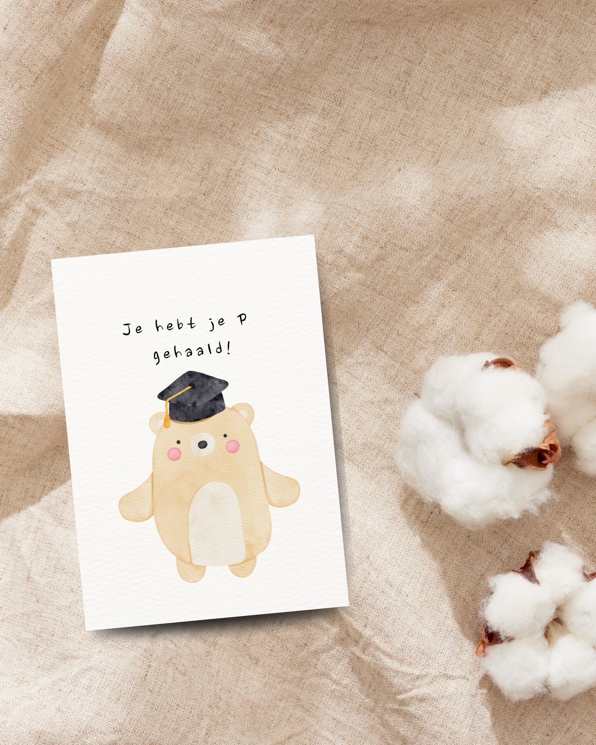 Een schattige wenskaart om een geliefde te feliciteren met het behalen van hun propedeuse