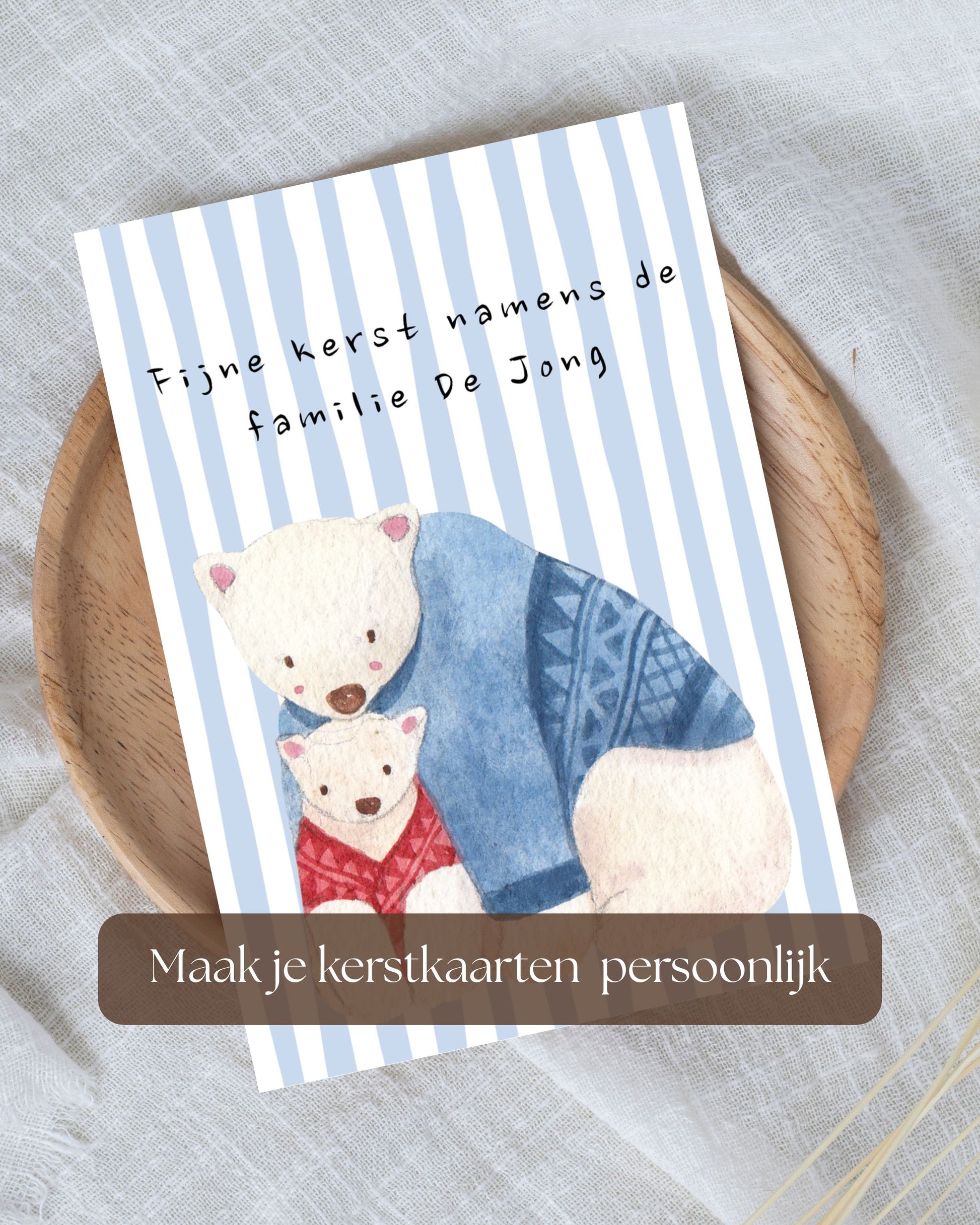 Een vrolijke kerstkaart met twee schattige ijsberen. Ideaal om feestelijke wensen te sturen in de koude winterdagen.